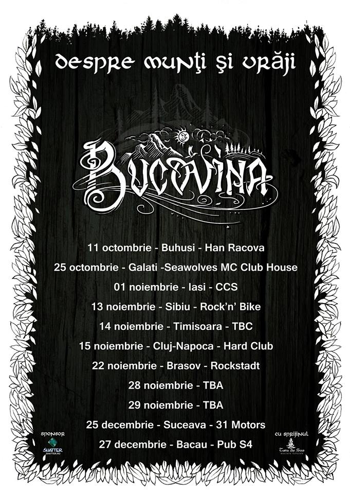 Sambata, pe 25 octombrie in Club House – Seawolves MC Galati PC, Bucovina, Best Romanian Metal Band si Best Romanian Metal Album la METALHEAD Awards din 2013, canta pentru fanii din Galati in cadrul turneului “Despre munti si vraji”.