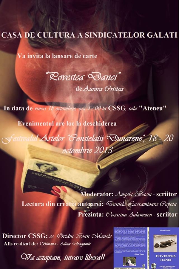 Casa de Cultura a Sindicatelor va invita la lansarea de carte „Povestea Danei” de Aurora Cristea