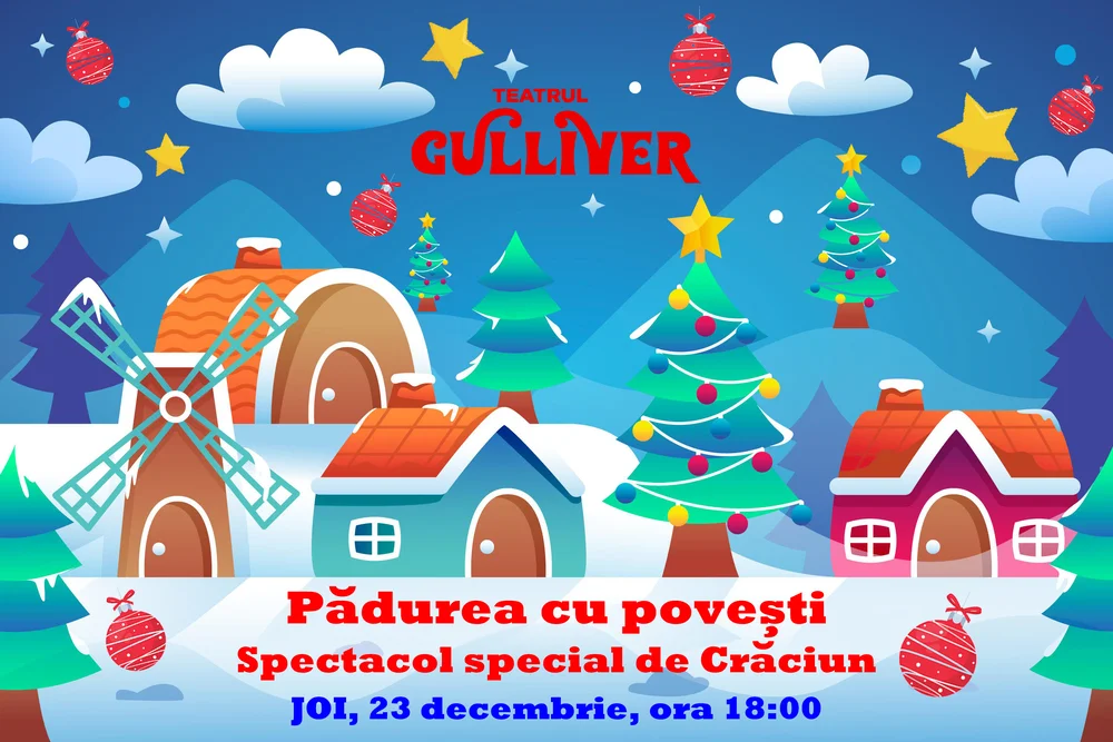 Sărbătorile care se apropie cu pași repezi ne cheamă aproape, în ritm de poveste și cu drag de tot ce înseamnă împreună, cu spirit de visare și chef de voioșie. Iar Teatrul ”Gulliver” a pregătit, întocmai pentru această perioadă, ca un fermecat preambul al momentelor remarcabile de sărbătoare, un spectacol special de Crăciun, ”Pădurea cu povești”, ce va fi prezentat publicului pe 23 decembrie, de la ora 18:00.
